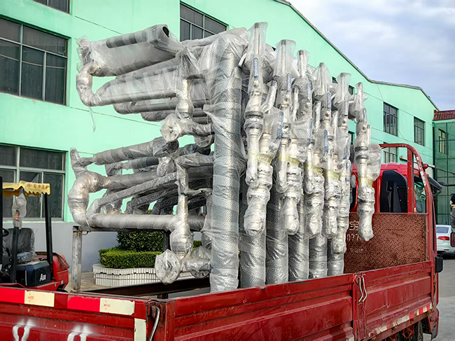 山東青島客戶定制采購的一批裝車鶴管已裝車發(fā)往使用現(xiàn)場